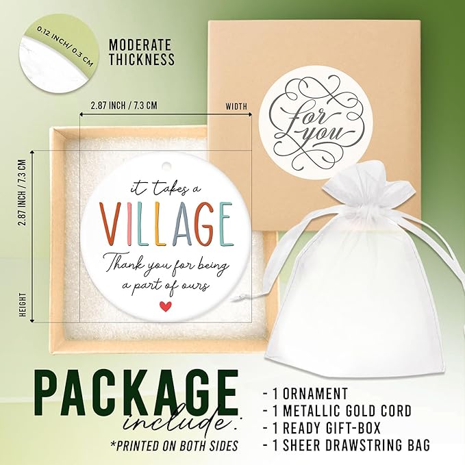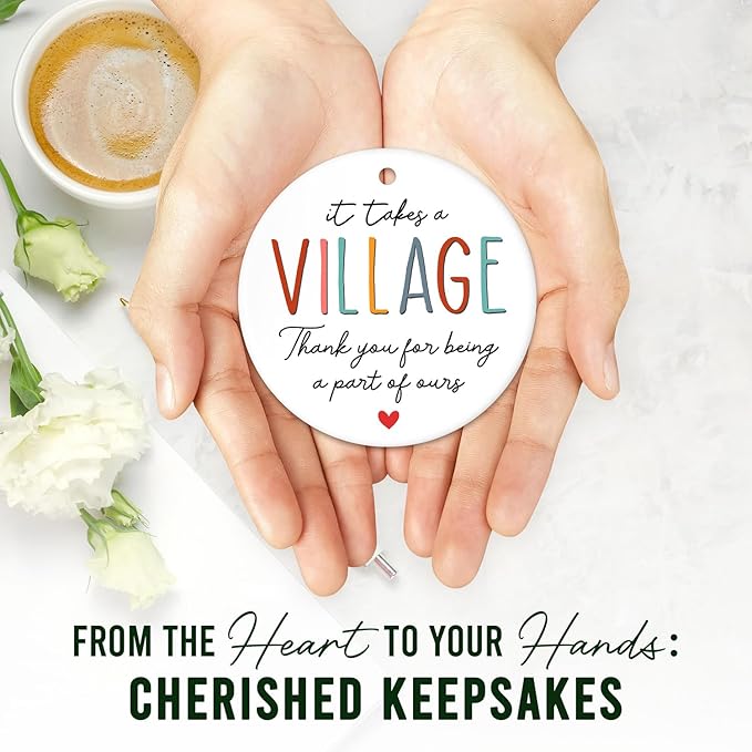 - IT TAKES VILLAGE GIFTS: Seeking a heartfelt gesture? Our ceramic ornament is perfect for expressing gratitude and appreciation. Suitable for men or women, it serves as a lasting reminder of the impact they've had. Let your loved ones know that their efforts are cherished and will never be forgotten. Ideal gift for thank you, retirement, farewell, goodbye, going away, leaving, work anniversary