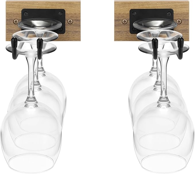 - Wall Mounted Wine Glass Rack: Organize wine glasses, champagne glasses, and more glassware in the Sorbus Wall Mounted Stemware Holder - Set comes with 2 wall mounted glass organizer racks - Features a beautiful wood finish