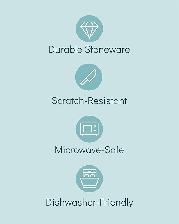 - ✅ DURABLE QUALITY THAT LASTS: Each piece is crafted from high-quality stoneware with a fired, glazed, and scratch-resistant finish, perfect for those who appreciate durability and refined style in their dinnerware.