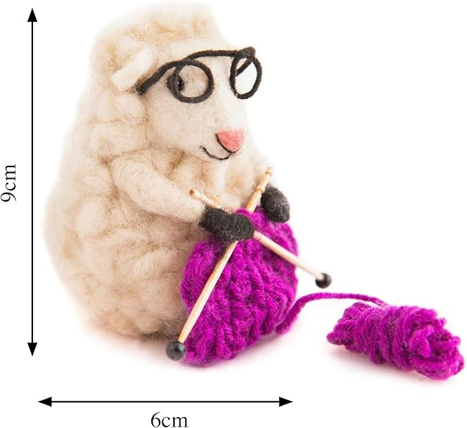 - Hand Felted Knitting Nell Sheep: Super sweet Knitting Nell Sheep is a hand needle felted woolly sheep with spectacles, tiny wooden knitting needles and stylish purple knitting. She has tiny glass eyes and a soft looped pure wool coat. A unique and adorable gift perfect for any occasion. An artisan masterpiece, delivered in a charming little home gift box—perfect for kids, friends, couples, or as a thoughtful gift.