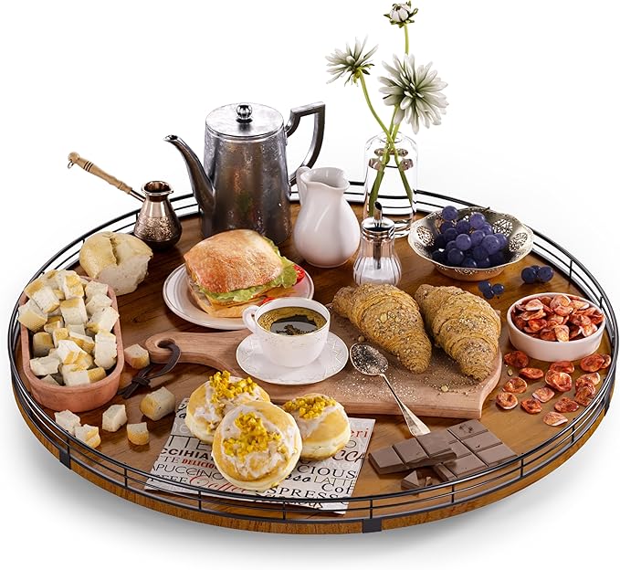 - πππππππ ππππππππ: Our farmhouse lazy susan made of natural solid wood, sturdy, durable, and premium quality. It will be beautiful and a completely food-safe way to decorate your food. It is known for its durability, strength, and aesthetic, as well as it can handle heavy use and resist wear and tear.