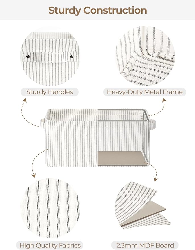 - Sturdy Structure: The fabric storage bin features metal frames supporting the top and sides, with a high-quality MDF base at the bottom, ensuring excellent overall structural stability.