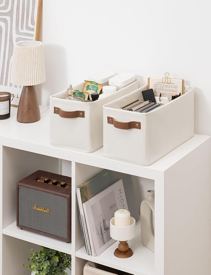 StorageWorks Narrow Storage Bins, Small Basket for Closet and Shelves, Rectangular Fabric Organizer with Handles, Toilet Paper Storage, Beige, 2-Pack