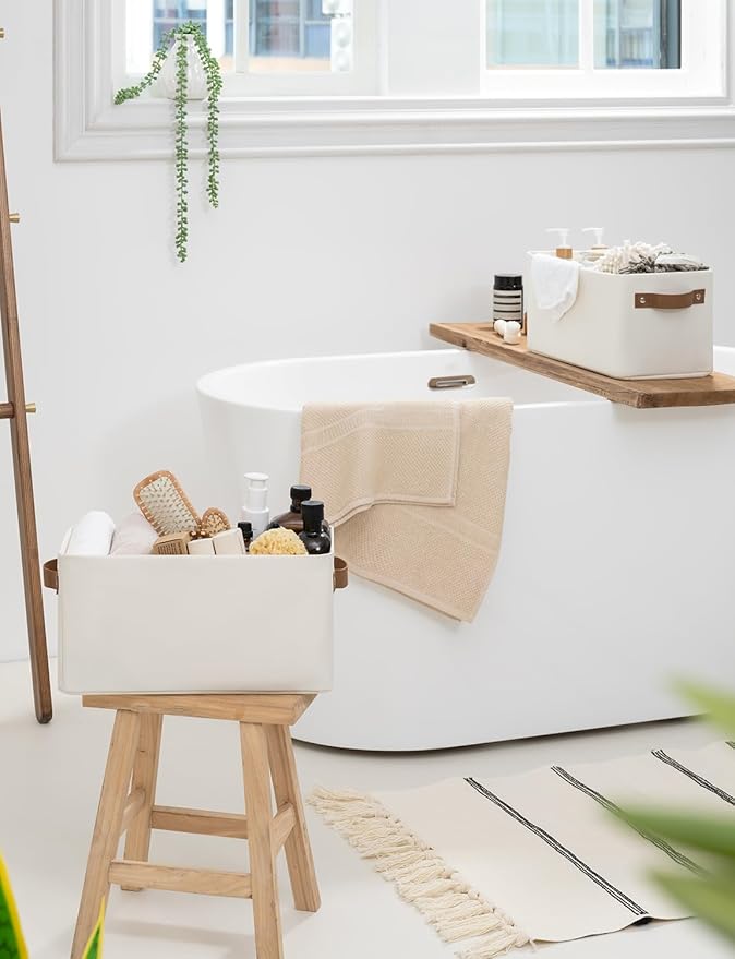 - Premium Materials: The storage basket is crafted from durable, thick fabric and features wide PU leather handles with rivet reinforcement, ensuring both strength and ease of movement to any desired location.
