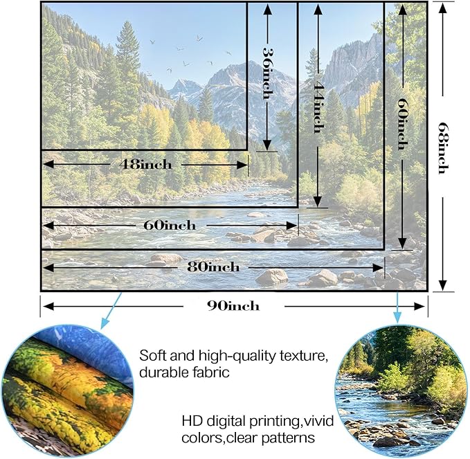 - ๐๏ธใHD Digital Printingใ: Utilizing advanced HD digital printing technology, this wall tapestry features vivid colors and intricate details of a serene forest and mountain scene, complete with a flowing river and birds in flight, bringing a touch of nature's beauty into your living space.
