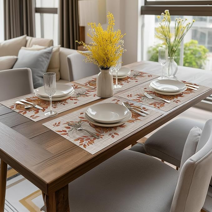 - Easy To Clean:The washable placemats simply wipe with soap,water and a soft sponge or cloth.Scrub stubborn stains with a soft bristle-brush and a bleach-based cleanse.