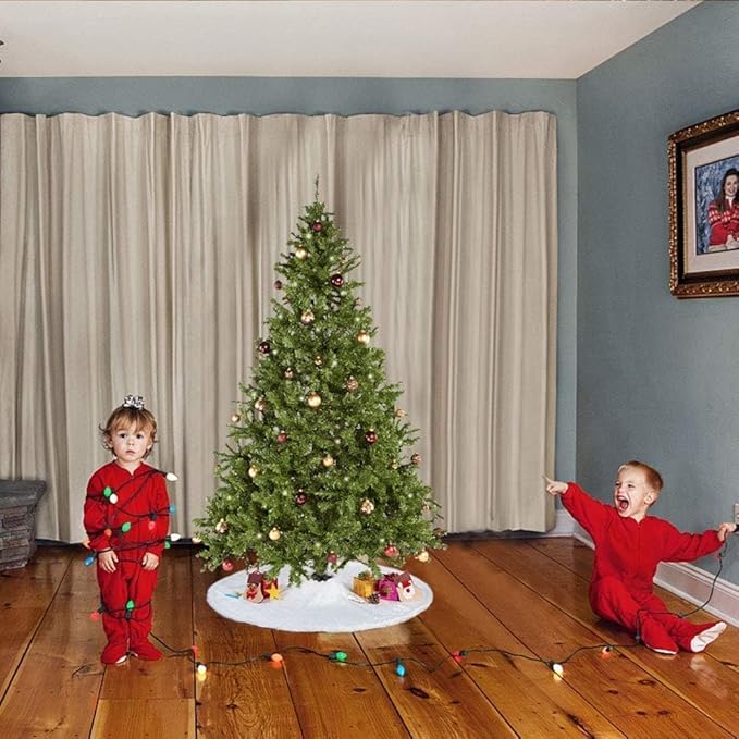 - ๐ High Quality Plush Fabric: This White faux fur Christmas tree skirt is softer than Normal ones. Well constructed and dense, eco-friendly, non-toxic and non-pungent smell, soft and comfortable, pets and kids favorite place in winter Christmas, just enjoy family happiness