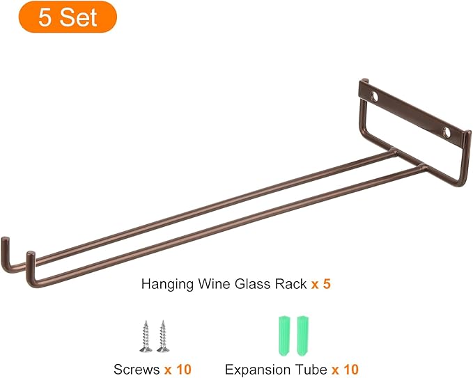 uxcell 5Pcs Wine Glass Rack, 11.81 Inch Iron Wine Glasses Rack Under Cabinet Stemware Rack - Wall Mountable Wine Glass Holder Storage Hanger for Bars Coffee Restaurants Kitchens, Bronze