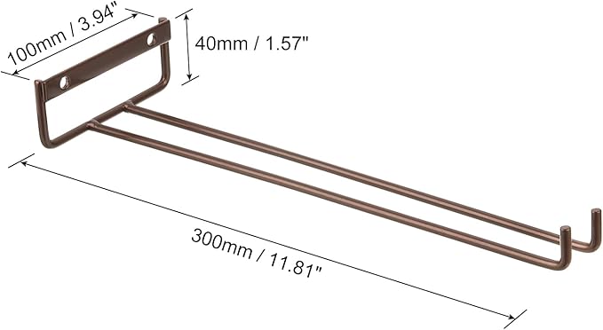 - [Wine Glass Holder] Material: Iron; Color: Bronze; Weight: 713g; Size: 300x100x40mm/11.81"x3.94"x1.57" (LxWxH); Thickness: 5mm/0.2"; Surface Treatment: High-Temperature Paint.