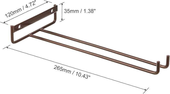 - [Wine Glass Holder] Material: Iron; Color: Bronze; Weight: 682g; Size: 265x120x35mm/10.43"x4.72"x1.38" (LxWxH); Thickness: 5mm/0.2"; Surface Treatment: High-Temperature Paint.