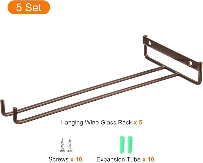 uxcell 5Pcs Wine Glass Rack, 10.43 Inch Iron Wine Glasses Rack Under Cabinet Stemware Rack - Wall Mountable Wine Glass Holder Storage Hanger for Bars Coffee Restaurants Kitchens, Bronze