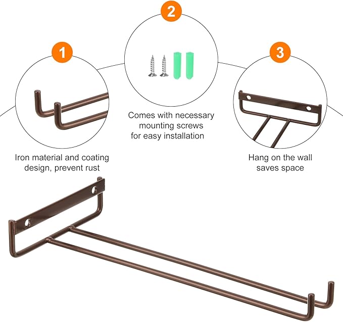 - [Easy to Install] Our wine glass rack comes with the necessary mounting screws for easy installation. You can only need to use a screwdriver to screw the provided screws into the wood of the cabinet. They fit perfectly under cabinets in a few minutes.