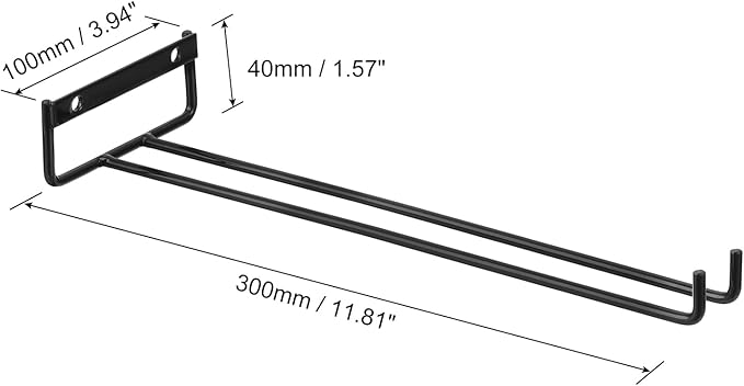 - [Wine Glass Holder] Material: Iron; Color: Black; Weight: 713g; Size: 300x100x40mm/11.81"x3.94"x1.57" (LxWxH); Thickness: 5mm/0.2"; Surface Treatment: High-Temperature Paint.