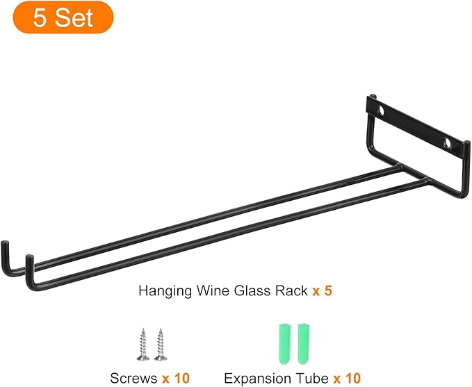 uxcell 5Pcs Wine Glass Rack, 11.81 Inch Iron Wine Glasses Rack Under Cabinet Stemware Rack - Wall Mountable Wine Glass Holder Storage Hanger for Bars Coffee Restaurants Kitchens, Black