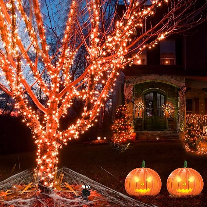 2 Pack 400 LED Solar String Lights, 8 Modes Solar String Lights for Outside, Waterproof and Solar Powered Outdoor String Lights for Holiday Christmas Yard Garden Tree Wedding Party (Orange)