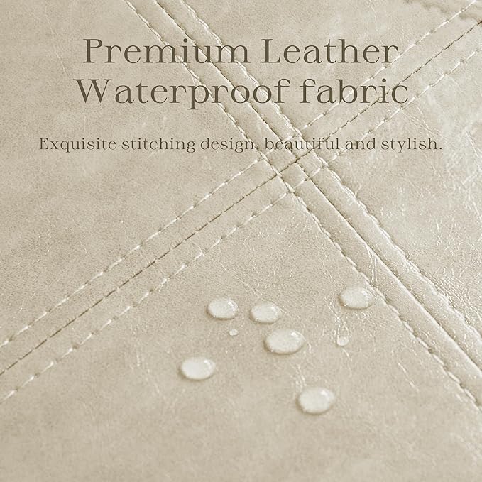 HUIMO Square Storage Ottoman, Tufted Leather Ottoman for Living Room (Khaki)