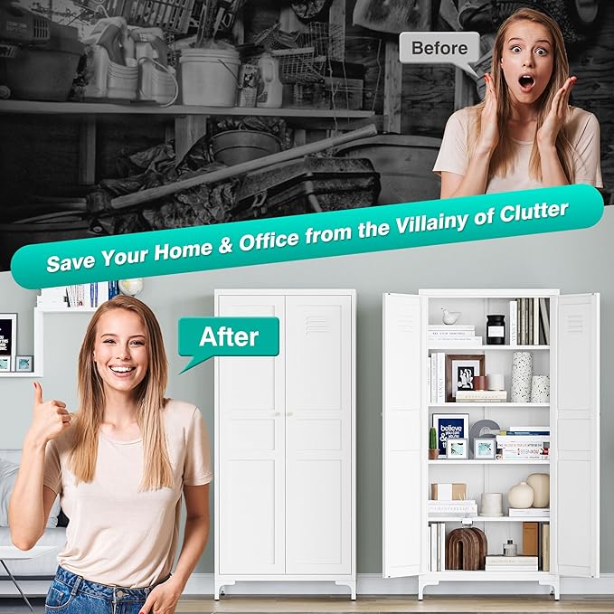 - Large Capacity with 5 Tier: This white storage cabinet have 5 tier for you to store kinds of daily use,toys,food,kitchen appliances and supplies.Let you organize your space like a pro. Save your home from the villainy of clutter.