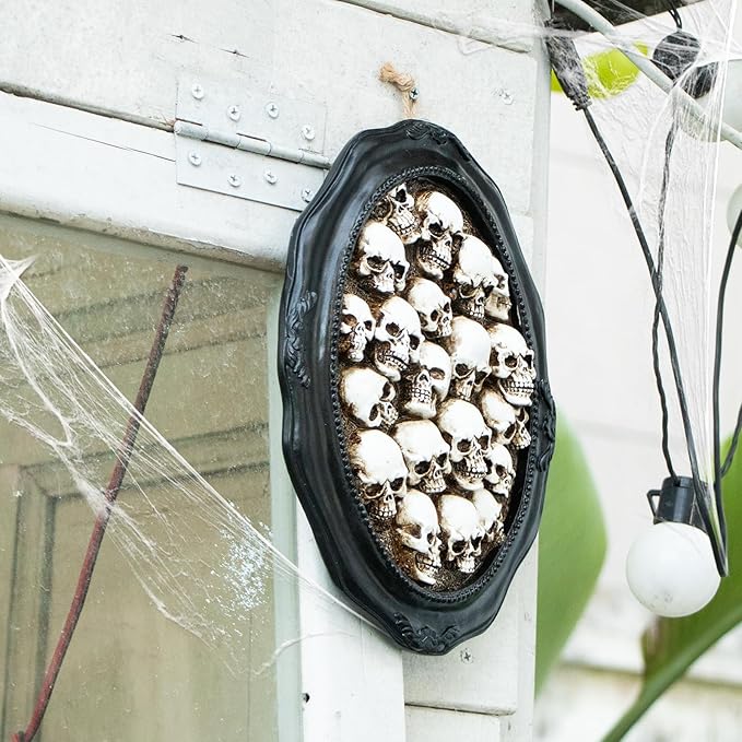 - High-quality materials: This Halloween decoration is made of high-quality resin and is painted with anti-fading paint, which creates a realistic and scary effect with a pile of skull