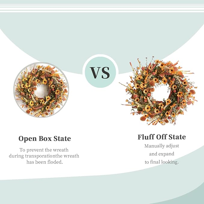 - Used for indoor and outdoor-This fall wreath can be used indoors and outdoors.But if it is outdoors,please make sure to hang it under cover to avoid direct sunlight and rain.The wreath is also durable and can be used repeatedly.