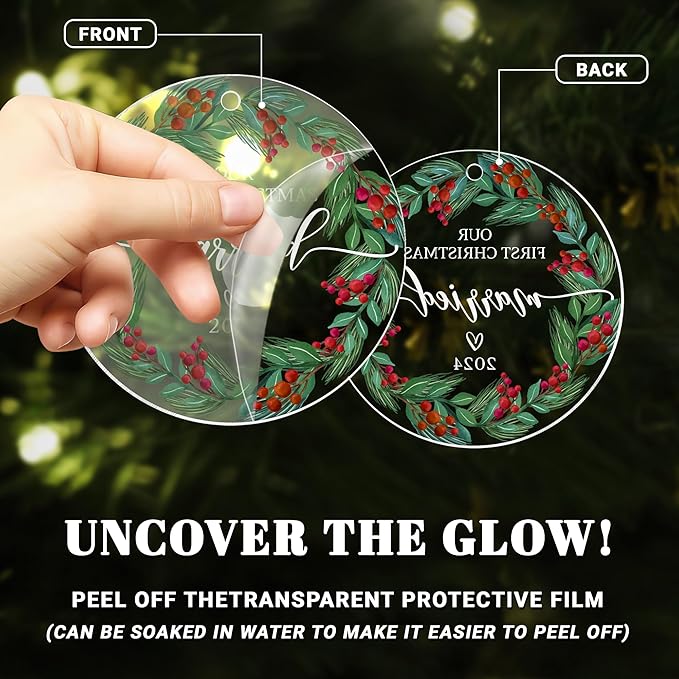 - ๐ HIGH-QUALITY ACRYLIC: Made from high-quality acrylic, this "Our First Christmas Married 2024" ornament is durable and built to last. Measuring 3 inches in width and 0.12 inches in thickness, itโs perfect to hang on the Christmas tree as a decoration to attract attention or to give as Christmas gifts to your friends or as married couple Christmas gifts.
