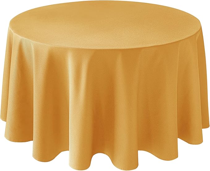 Biscaynebay Fall Tablecloth Textured Fabric Round Tablecloths 90", Fall Gold Thanksgiving Autumn Harvest Water Resistant Fabric Tablecloths for Kitchen, Dining, Wedding, Parties Machine Washable