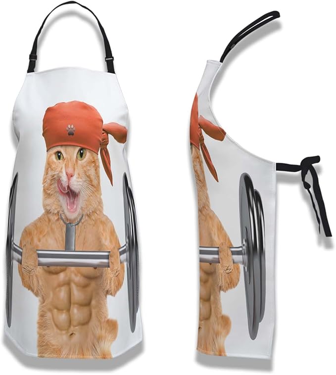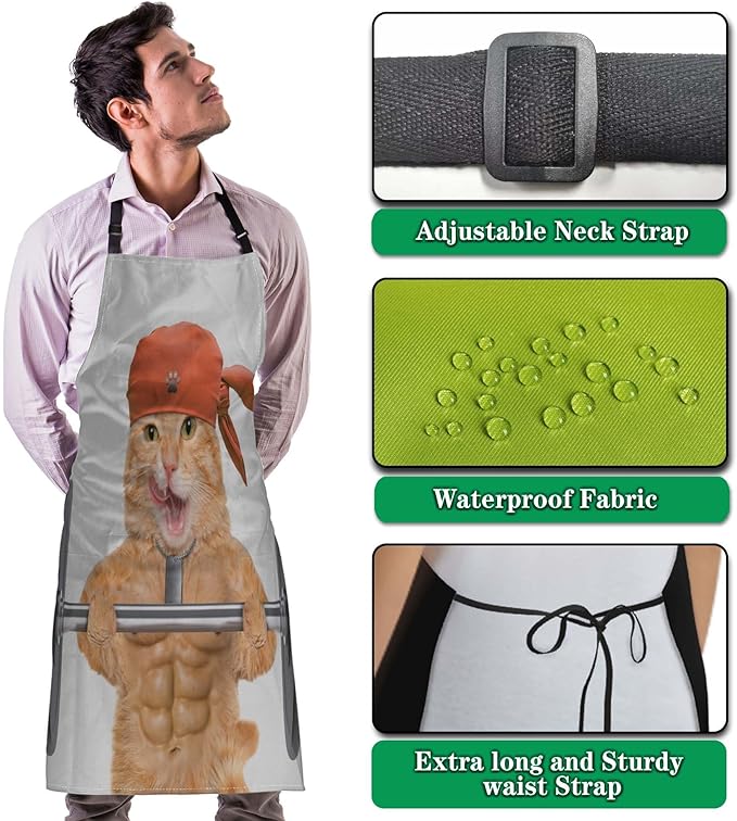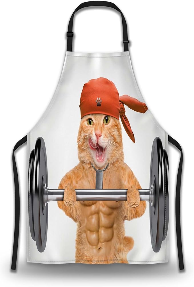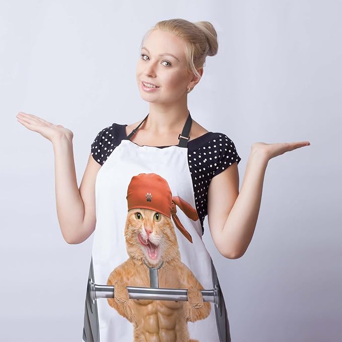 Apron Kitchen for Women Fitness Cat Mans Aprons for Cooking Funny for Kitchen Cooking Restaurant BBQ Painting Crafting Gardening 27” (W) x 31” (H), Waterproof Apron