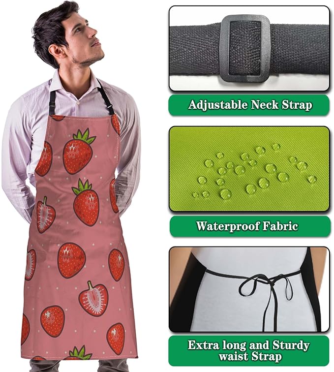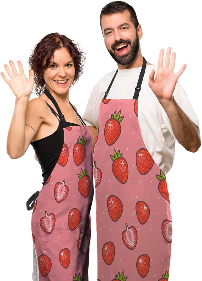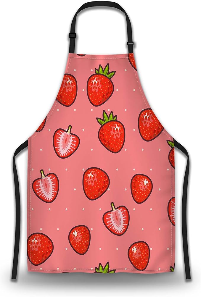 Kitchen Apron for Men Strawberry and Strawberry Slices Cute Aprons for Women for Cooking Restaurant BBQ Painting Crafting Gardening 27” (W) x 31” (H), Waterproof Aprons