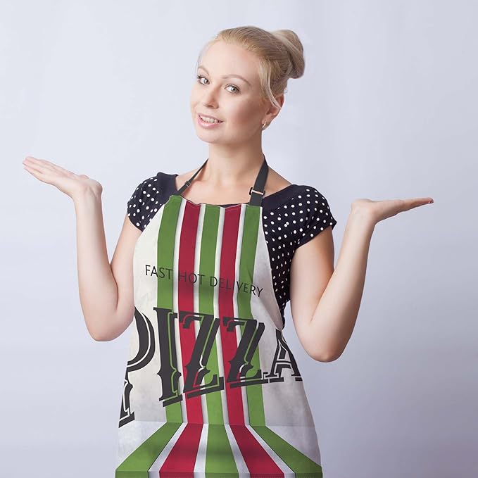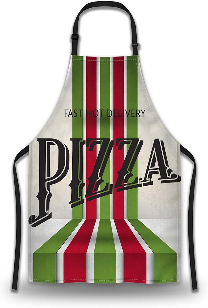 Cute Cooking Apron for Men Retro Pizza Pinafore Aprons for Women for Kitchen Cooking Restaurant BBQ Painting Crafting Gardening 27” (W) x 31” (H), Waterproof Apron