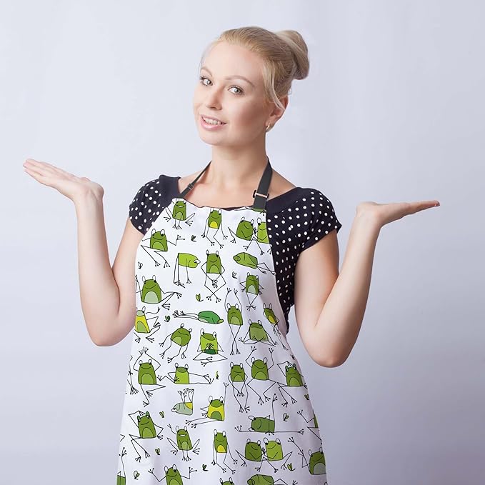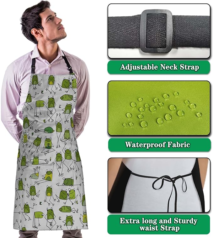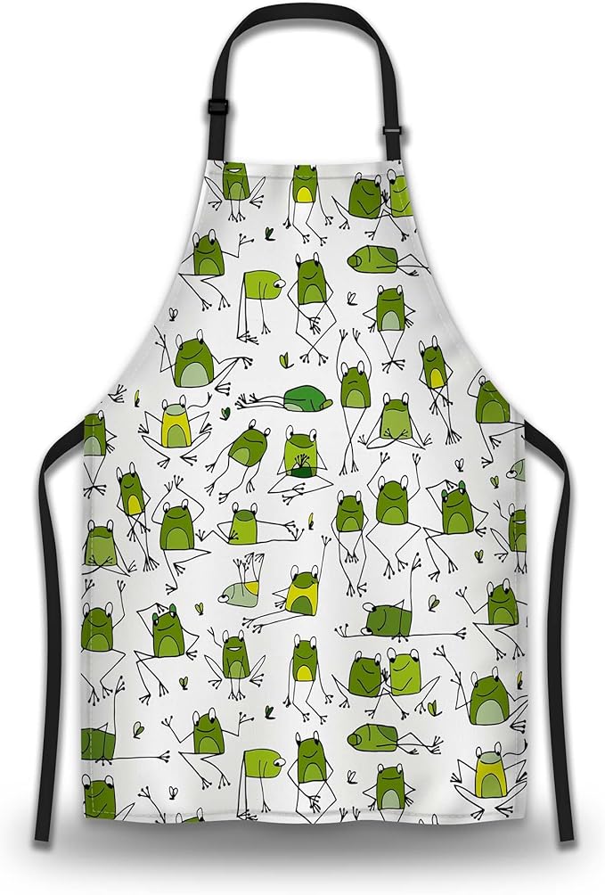 Garden Apron for Women Green Frogs Mans Aprons for Grilling for Kitchen Cooking Restaurant BBQ Painting Crafting Gardening 27” (W) x 31” (H), Waterproof Apron