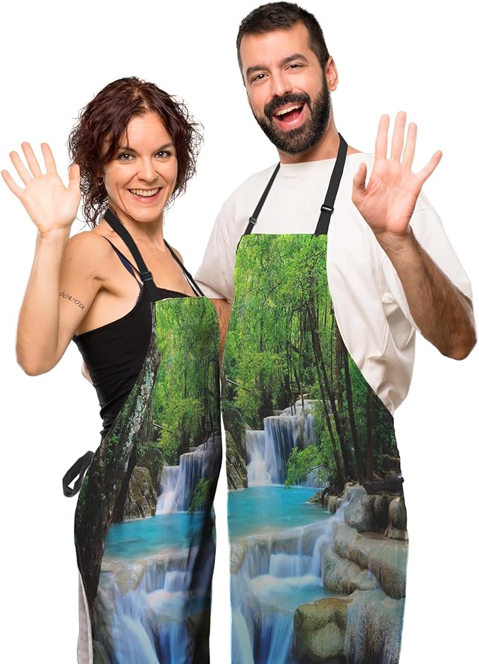 Kitchen Apron for Men Waterfalls Forest Creek Landscape Trees Cooking Aprons for Women for Cooking Restaurant BBQ Painting Crafting Gardening 27” (W) x 31” (H), Waterproof Aprons