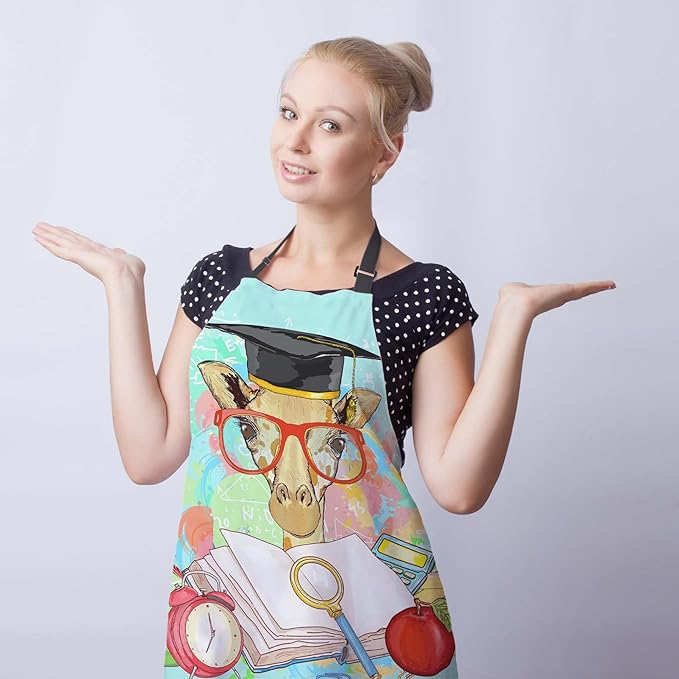 Kitchen Apron for Women Animals Students Giraffe Cooking Aprons for Men for Cooking Restaurant BBQ Painting Crafting Gardening 27” (W) x 31” (H), Waterproof Apron