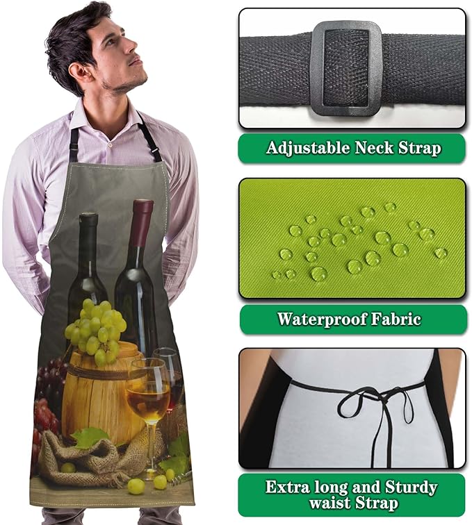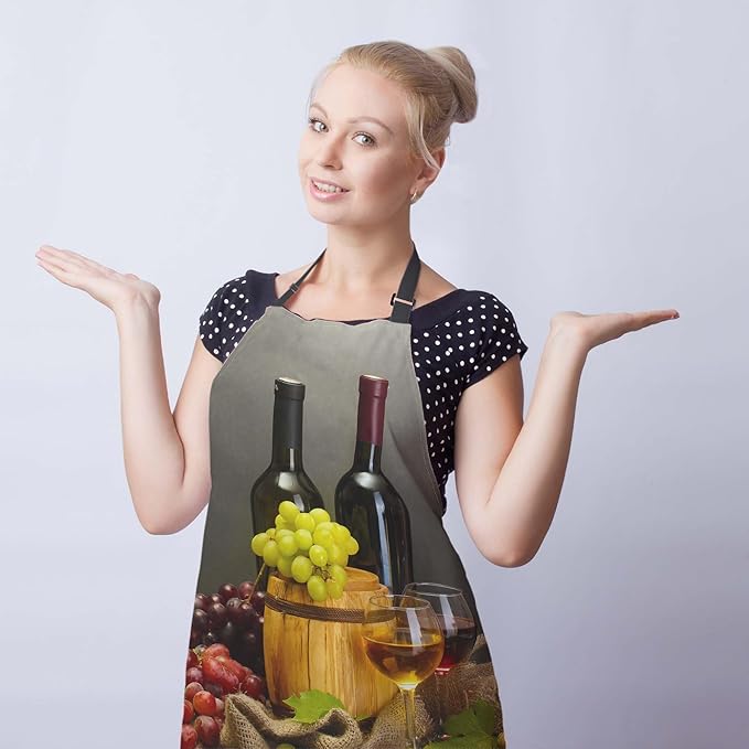 Garden Apron for Men Bottles and Glasses Pinafore Aprons for Women for Kitchen Cooking Restaurant BBQ Painting Crafting Gardening 27” (W) x 31” (H), Waterproof Aprons