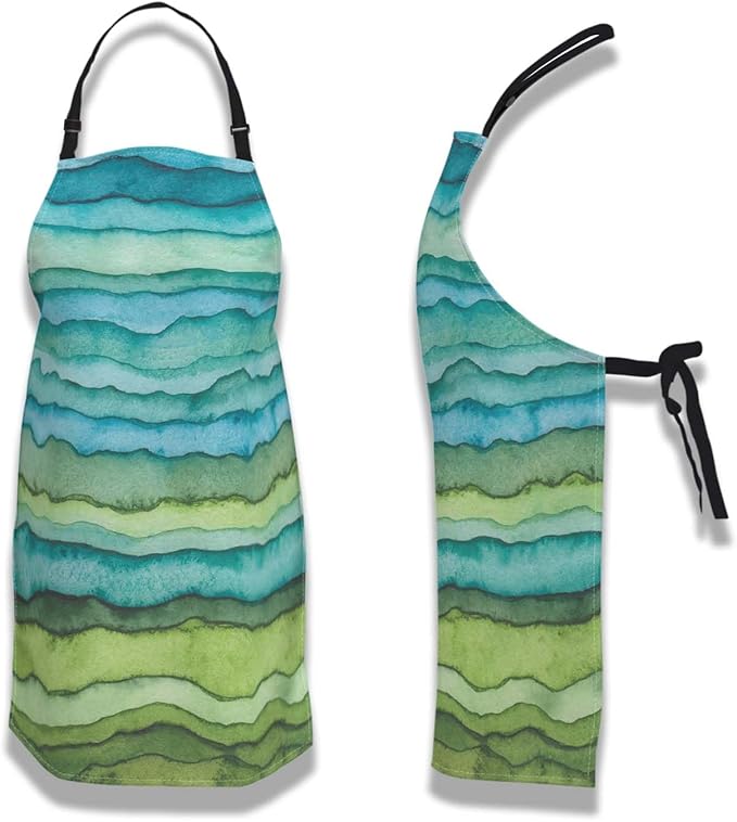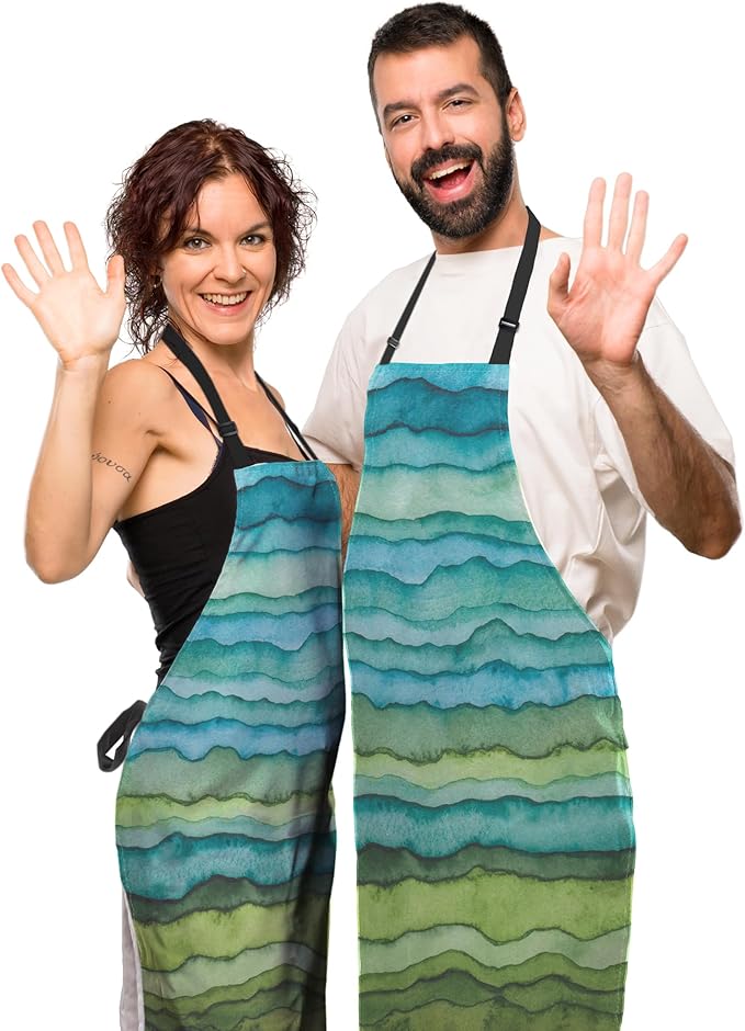 Garden Apron for Women Blue and Green Waves Cute Aprons for Men for Kitchen Cooking Restaurant BBQ Painting Crafting Gardening 27” (W) x 31” (H), Waterproof Apron