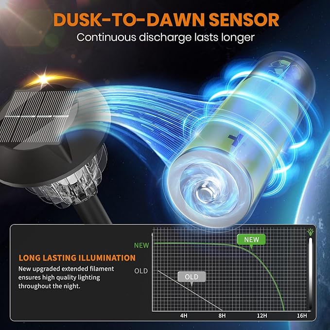- SOLAR LANDSCAPE LIGHTS: Our upgraded solar pathway lights draw inspiration from the cosmos, boasting a unique and durable construction. The sleek and modern design effortlessly complements the surrounding landscape, creating a lovely ambiance. Bringing a touch of magic to your garden and creates a warm and inviting atmosphere. Solar outdoor walkway lights are designed to provide an attractive pattern, lights up your garden at night.