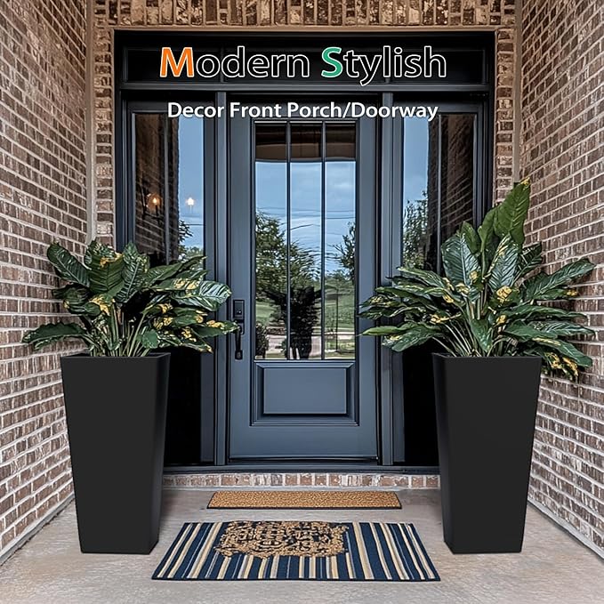 Tall Planters for Outdoor Plants, Large Resin Flower Pots for Garden, Front Porch, Patio, Indoor - Set of 2 (Black, 32 inch - 2 Pack)