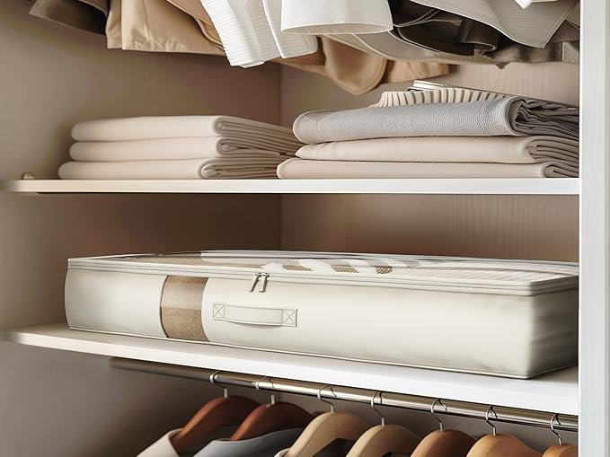 Under Bed Storage Containers with Window, Closet Organizers and Storage Bags, Foldable Underbed Storage Bags for Blankets, Clothing, Comforter, Linen Sheets, Wrapping Paper, 3 Pack, White Ivory