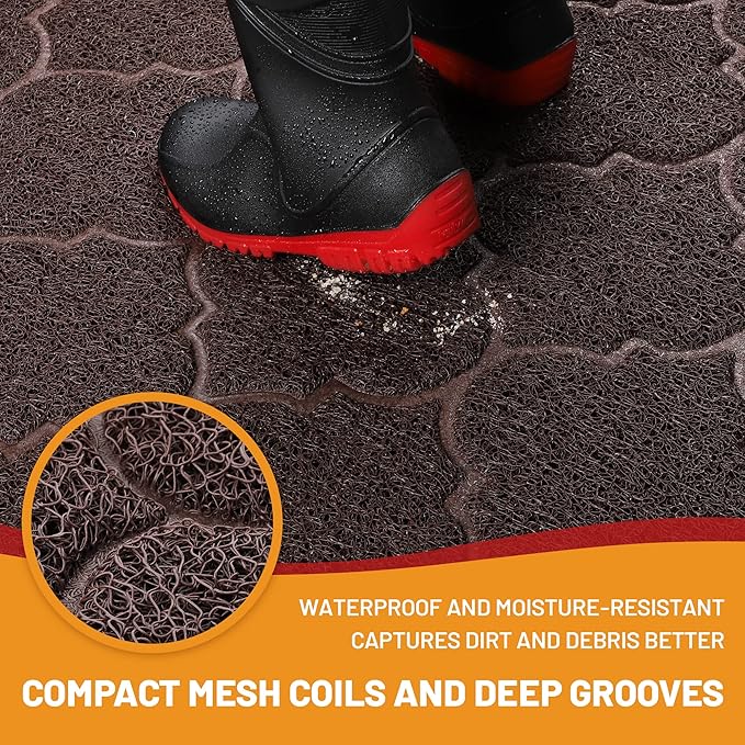 - LOW-PROFILE DESIGN:The dimensions of this front door mat are 29x17 inches, low profile design allows doors to easily open over the mat.Unique mesh weave construction to capture all of the dirt, mud and other messy unwanted debris from tracking into your home.The outdoor mat is perfect for everyday household use to keep the interior of the home clean.