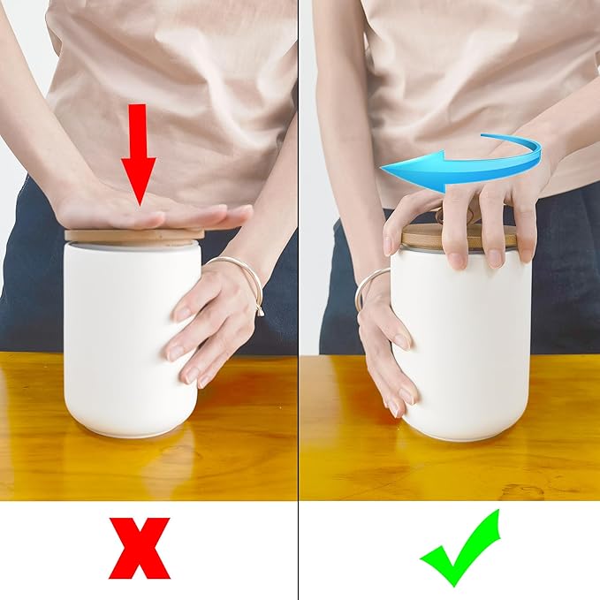 - 【Easy to Use and Clean】Please don't directly to direct downward pressure on the lid, The best way to seal is to twist the lid and press it at the same time.The sugar flour container set for counter set features a large diameter jar mouth design, which can be quickly and easily filled or cleaned. The ceramic kitchen canisters is dishwasher safe, and the wooden lid can only be hand washed and needs to be wiped dry in time.
