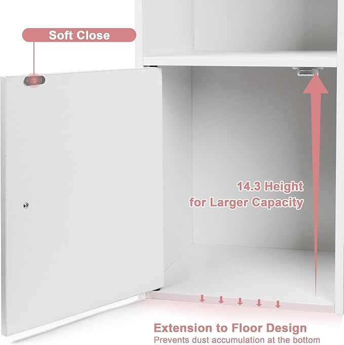 - Floor Storage with Doors - We've upgraded the floor storage unit, offering dimensions of 11.5 inches long by 11.5 inches wide by 14.3 inches deep, which provides an additional 2 inches of height compared to other models. The enclosed storage space reaches down to the floor, keeping dust away and making cleaning a breeze.