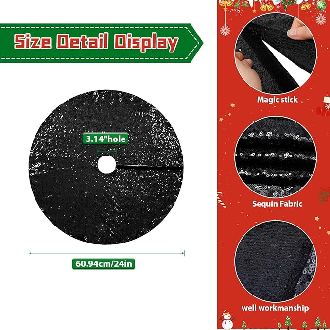 Eternal Beauty Christmas Tree Skirt, 24 Inch Black Halloween Sequin Tree Skirt Small Xmas Tree Skirt for Christmas Tree Decorations