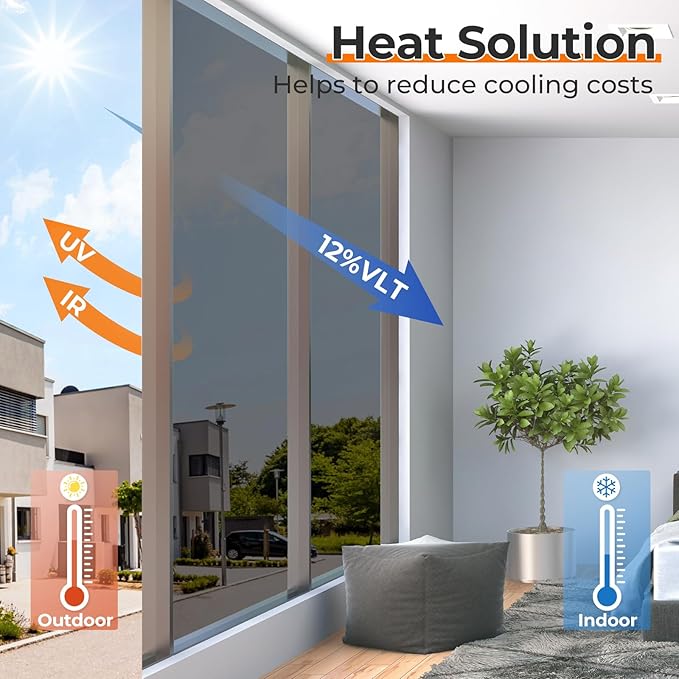 - Heat Control, Cost-effective: By reflecting a substantial portion of incoming sunlight, these window tint can help maintain a cozy indoor environment in winter and a pleasantly cool one in summer, reducing the need for air conditioning and ultimately lowering energy costs
