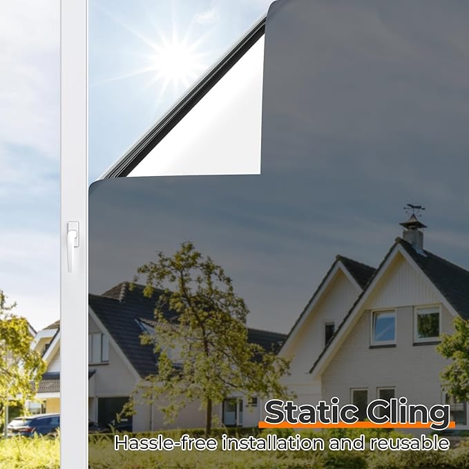 - No Glue, Easy Install: Our mirror tint film uses a static cling design and can be applied in minutes as long as the backing protective film is removed and a generous amount of water is sprayed. Unlike adhesive-based films, when it needs to be removed, it can be peeled off cleanly without leaving any sticky residue