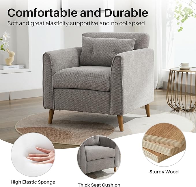 - VERSATILE USAGE: Combining classical and modern aesthetics, this grey accent chair boasts a sleek and timeless design that enhances any space in your home. Ideal for the living room, bedroom, office, reading nook, or any of your lobby area