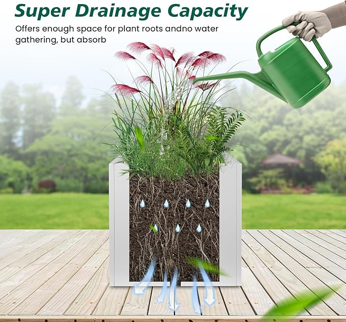 - [ White Steel Planter] Galvanized planter box is made of galvanized steel with white powder coating. Galvanized Steel Planter is wear-resistant, corrosion-resistant and long lifetime.