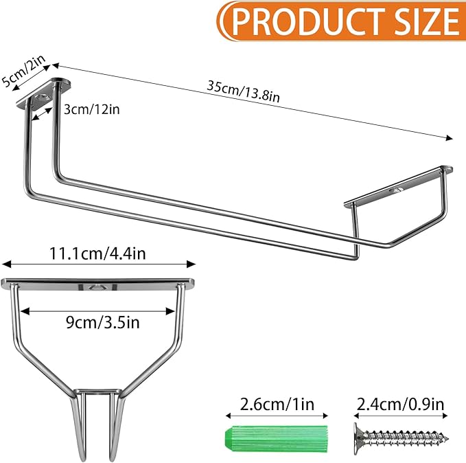 • 【Package Include】- You will receive a total of 5 set of hanging wine glass rack, each rack is L35 x W11.1 x H5cm (13.8x4.4x2 inches), comes with 8 screws and 8 plugs, this will be a perfect combination for easy installation.
