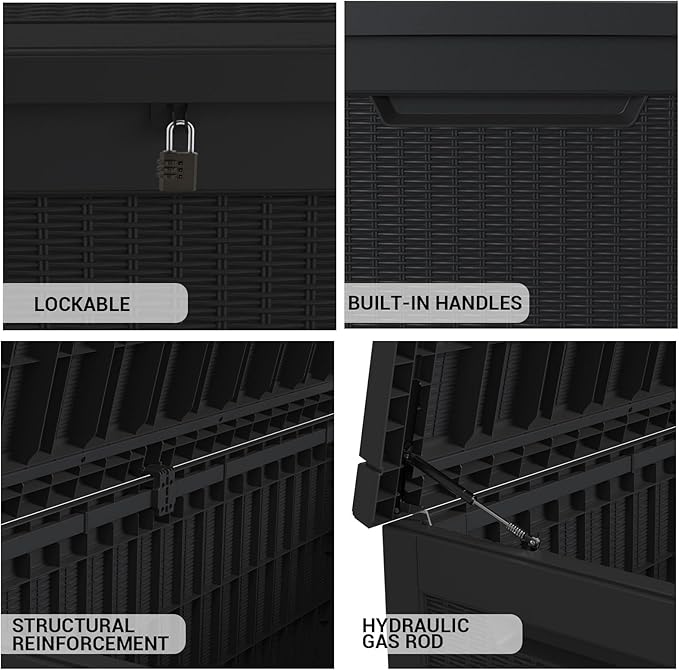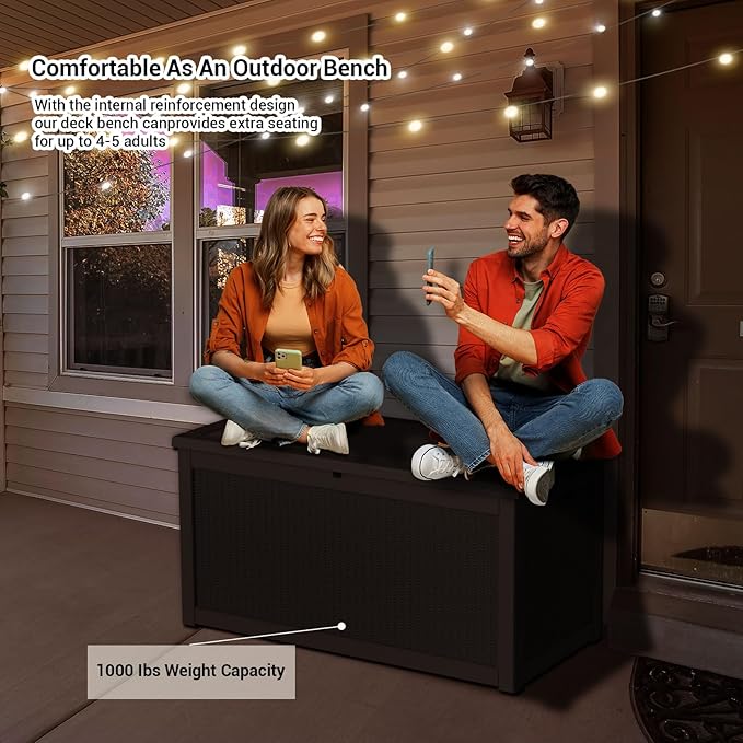- All-Weather Waterproof Protection:Made with high-quality waterproof materials, this deck box keeps your belongings dry and safe from rain, snow, and humidity year-round.