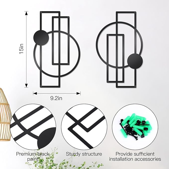OYEFLY 2 Pcs Metal Abstract Wall Art,Modern Geometric Decor (Black, style 1)