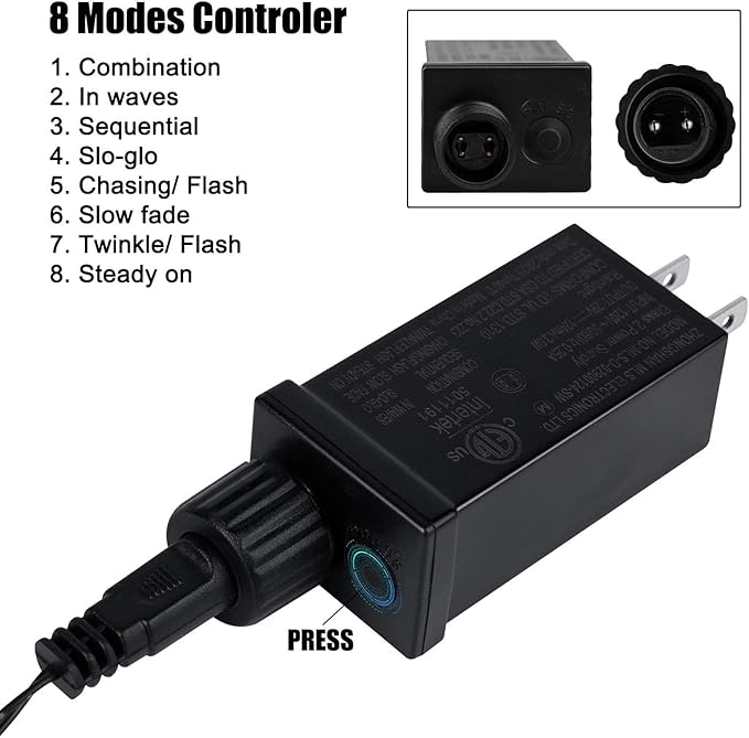 - 8 Lighting Modes: Waterproof outdoor mini Christmas lights feature 8 lighting modes, including Combination, In waves, Sequential, Slow Glow, Chasing/Flash, Slow fade, Twinkle/Flash, and Steady on. Just press the round button on the adapter to set up your mode to fit your Halloween/holiday party decor or light up a unique outdoor/indoor illuminated backdrop for your vivid and funny decorations