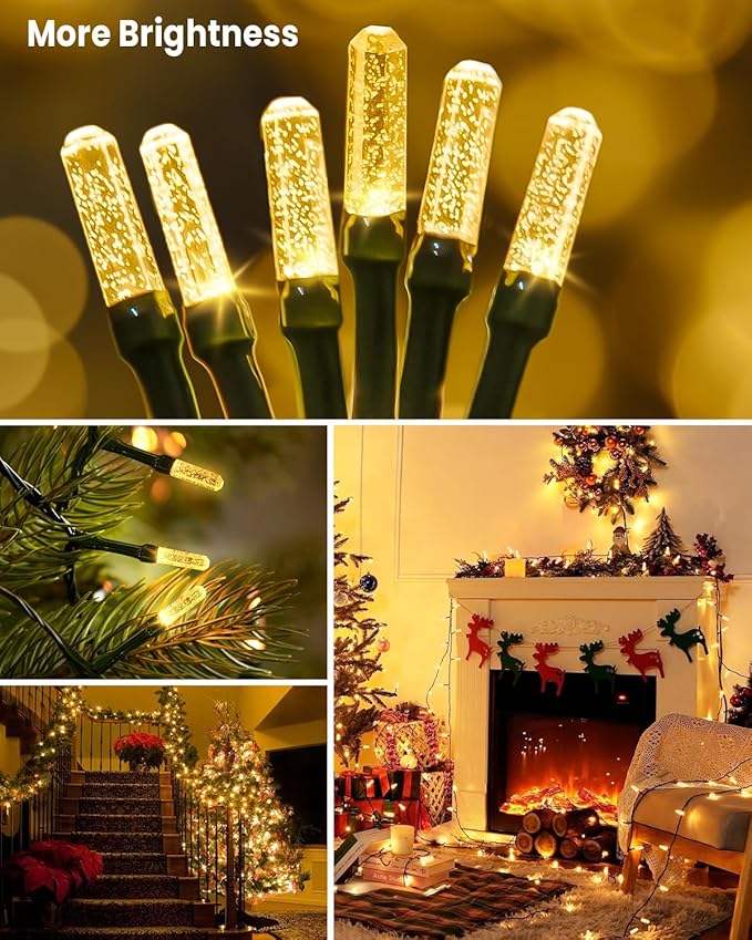 - Unique Design Christmas Lights: Are you looking for a new type and more bright LED Christmas lights? Our Twinkling Christmas tree lights feature a unique six-sided design that can emit light from multiple angles, making it brighter than traditional single-sided light beads. When it lights up, you can see the crystal bubbles inside. The total length is 158 feet 480 LED bulbs and comes with a 9.84-foot leading cord, convenient for you to plug in power