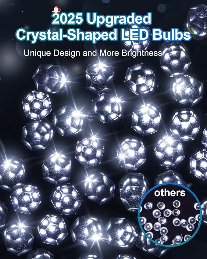- Unique Design Christmas Lights: Are you looking for a new type and more bright LED Christmas lights? Our Twinkling Christmas tree lights feature Unique Hexagonal Crystal-Shaped Bulbs that emit light from multiple angles, making them brighter than traditional single-sided light beads. The total length is 158 feet 480 LED bulbs and comes with a 9.84-foot leading cord, convenient for you to plug in power